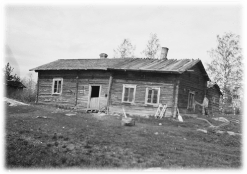 Tummulan savutupa Muuruvedellä. ”Otin valokuvan ainoasta tiedossani olevasta asutusta savutuvasta Muuruvedellä, jota paikkakunnalla leikillisesti kutsutaan Tummulaksi.” Stipendiaatti Aulis Rissanen 1927.
